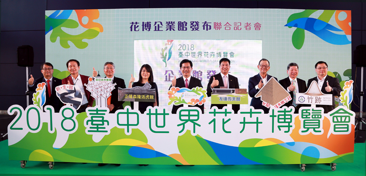 友達光電落實社會參與、回饋在地,參與臺中花卉博覽會 (中:臺中市長林佳龍,右四:友達光電董事長暨執行長彭雙浪) |