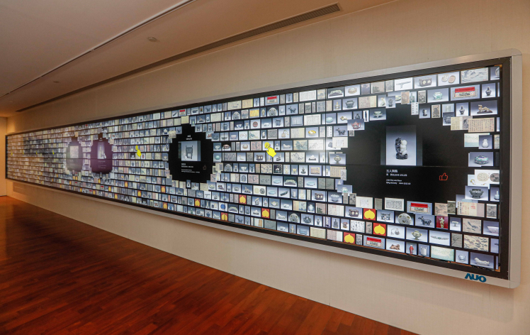 因應(yīng)全球智慧化文創(chuàng)展演新趨勢,創(chuàng)利空間本次聯(lián)手國際動畫界首屈一指的太極影音,整合故宮數(shù)位典藏資源,於導(dǎo)覽大廳打造結(jié)合科技與人文的智慧博物館互動展示空間。其中包括長達(dá) 12 公尺亞洲最大的「文物互動導(dǎo)覽牆」(*),採用 20 片友達(dá) 55 吋高規(guī)格拼接牆顯示器組成,具有高解析、低反射、極窄邊框的搶眼設(shè)計,拼接後的邊框?qū)挾葍H1.8mm,以近乎無接縫設(shè)計讓參觀者聚焦整體影像內(nèi)容,享受沉浸式觀賞體驗。互動導(dǎo)覽牆的設(shè)計靈感源自故宮多寶格文物,具有直覺友善的使用介面與紅外線感應(yīng)設(shè)計,可讓多人同時透過點選、拖拉、滑動等互動手勢,輕鬆飽覽 300 多件故宮文物精彩的圖像、影片、動畫、360 度環(huán)物模型及書法釋文,整合線上線下體驗,吸引觀眾接續(xù)前往展間探索實體文物。位於導(dǎo)覽大廳兩側(cè)的「展訊輪播牆」則分別由4片55吋拼接牆顯示器所組成,透過螢?zāi)惠啿ス蕦m當(dāng)期展覽與重要活動訊息,讓參觀者得以先睹為快。